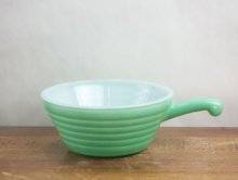 「Fire-King」(ファイヤーキング)は1941~86年に米国「Anchor Hocking」社(アンカーホッキング)が製造したオーブン耐熱ガラス製食器のシリーズブランドです。 その中でもミルクガラスの製品が有名で 豊富なカラーやプリント、フォルムがあり代表的なシリーズで翡翠色の「ジェダイ」シリーズなどがあります。 丸みのある可愛らしいフォルムとミルクガラスの素材感がとても良い手触りや口触りを 感じさせてくれます。 飲み物を入れた時に中身が透けて見えるのもとても素敵な雰囲気です。 当時のアメリカの日常を感じる事の出来る食器を是非お試しください。