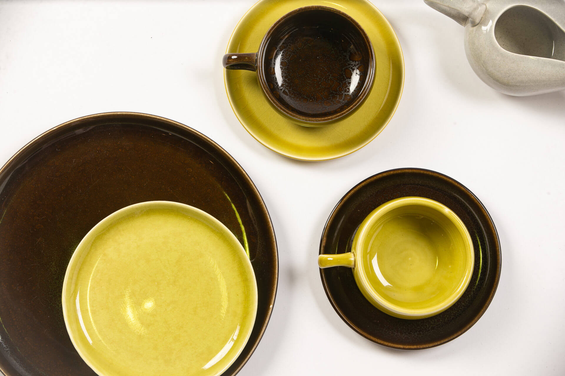 アメリカンモダニズムの確立に大きな影響を与えた工業デザイナー『Russel Wright』( ラッセル ライト) 丸みがあるフォルム、シンプルかつ機能的なデザインに加えカラーバリエーションも豊富で瞬く間にヒットしました。 いろいろなシリーズが発売されましたが代表的なシリーズで 『アメリカンモダン』『イロコイスカジュアル』などがあります。1953年に発表されたメラミン素材のレジデンシャルコレクションはニューヨークの近代美術館からグッドデザイン賞も受賞しました。デザイナー『ラッセル ライト』は食器以外にも家具や照明など幅広くデザインを手掛けています。