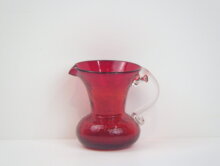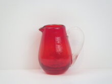 Vintage Hand Blown Crackle Glass Pitcher Creamer/Vase(H9.5cm)ビンテージ ガラス ピッチャー クリーマー フラワーベース 花瓶 レッド K